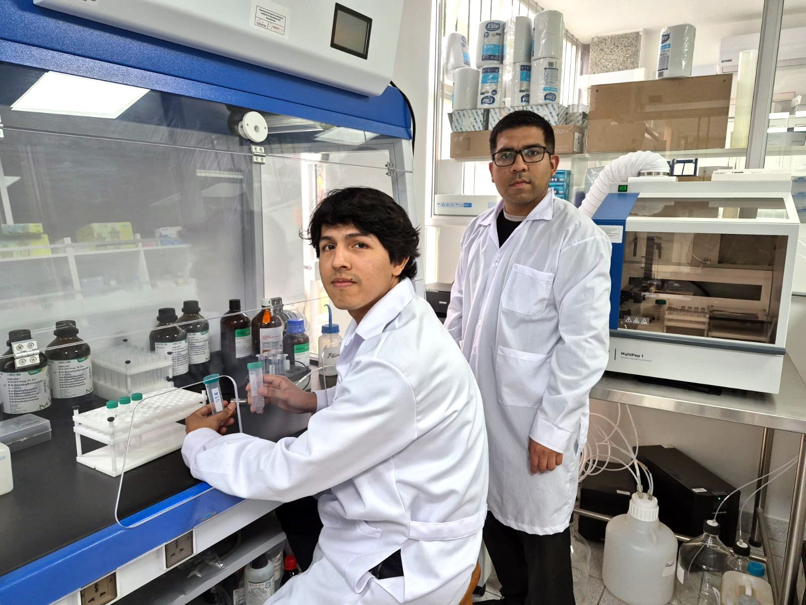 La Facultad de Ciencias Biológicas de la Universidad Nacional Mayor de San Marcos (UNMSM) anuncia que los estudiantes Raúl Rivas Amado, de la Maestría en Biología Molecular, y Daniel Torrejón Maldonado, del Doctorado en Ciencias Biológicas, ambos integrantes del Laboratorio de Biología Molecular, han sido seleccionados para participar en el curso internacional COL11: Plataforma tecnológica para la obtención de anticuerpos monoclonales – Seguridad Sanitaria de Latinoamérica, que se realizará en la Universidad de Antioquia (Medellín, Colombia) del 24 de noviembre al 5 de diciembre de 2025.